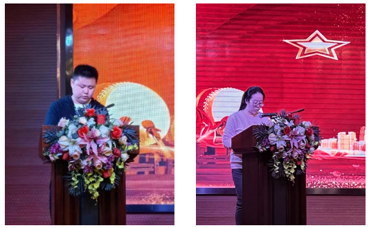 接下來,副總經理杜海燕女士宣讀《關于表彰2023年度海泰鋼管集團先進個人的決定》,希望公司全體員工以他們為榜樣,進一步提高思想素質和服務技能,齊心協力,為推動公司高質量發展做出新貢獻。隨后由集團副董事長王曉健先生、總經理顧祥先生、副總經理毛艷女士、杜海燕女士親自為集團先進和部門先進員工頒發獎杯。